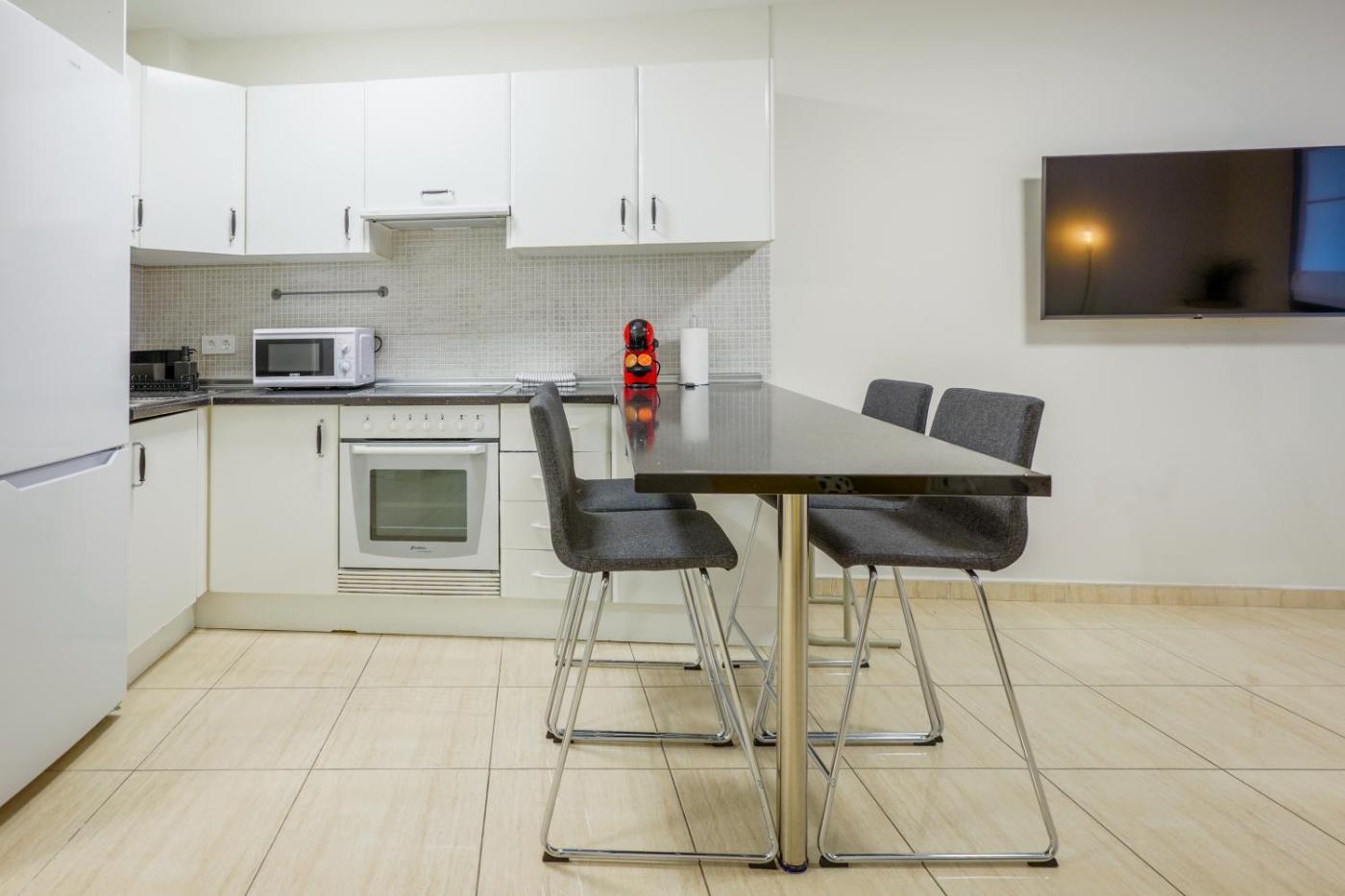 Two-Bedroom Apartment with Mountain View. This spacious apartment features 1 living room, 2 separate bedrooms and 1 bathroom with a shower and free toiletries. Guests will find a stovetop, a refrigerator, kitchenware and an oven in the fully equipped kitchen. The apartment also comes with a barbecue. Boasting a terrace with mountain views, this apartment also features a washing machine and a flat-screen TV with cable channels. The unit has 3 beds.