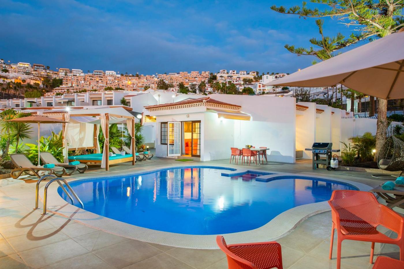 Luxury Villa 407 with Private Pool. Magical and Unique Villa for your Vacation! 130 m² designed for luxury and comfort. This villa is the perfect refuge for those seeking to enjoy an exclusive environment with tranquility, spectacular views, and a private heated pool, ideal for any time of year. Two bedrooms: Master bedroom: double bed for a restful sleep. Second bedroom: two single beds, perfect for family or friends. Living area: sofa bed ideal for additional guests or to relax comfortably. Fully equipped kitchen: includes everything you need to prepare delicious meals. Private bathroom: with modern shower for your comfort and privacy. Private heated pool: enjoy a relaxing swim at any time, with total privacy. Spectacular sunsets: a unique experience to enjoy the horizon from the comfort of your villa. Tranquility and air conditioning: a fresh and serene space designed for your well-being. A villa that combines luxury, comfort, and impressive sunsets, offering the perfect balance to disconnect and enjoy to the fullest ;