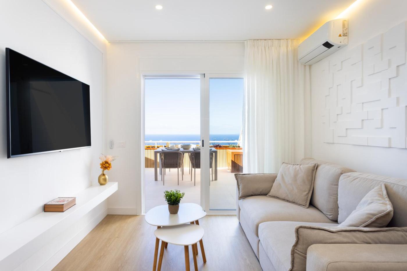 The apartment with a terrace and sea views has 1 bedroom, a living room, a flat-screen TV, an equipped kitchen with a dishwasher and an oven, and 1 bathroom with a shower. Towels and bed linen are offered in the apartment. The property has an outdoor dining area.