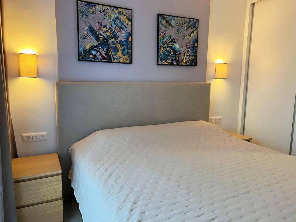 The apartment with a balcony and sea views has 1 bedroom, a living room, a flat-screen TV, an equipped kitchen with a dishwasher and an oven, and 1 bathroom with a bidet. Towels and bed linen are offered in the apartment. The property has an outdoor dining area.