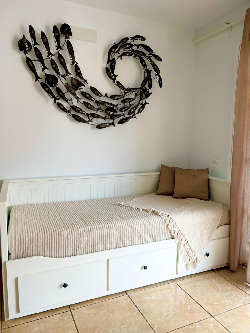 One-Bedroom Apartment. This spacious apartment comprises 1 living room, 1 separate bedroom and 1 bathroom with a shower and a hairdryer. The fully equipped kitchenette features a refrigerator, a dishwasher, kitchenware and an oven. Featuring a terrace with sea views, this apartment also provides air conditioning and a flat-screen TV. The unit offers 3 beds.