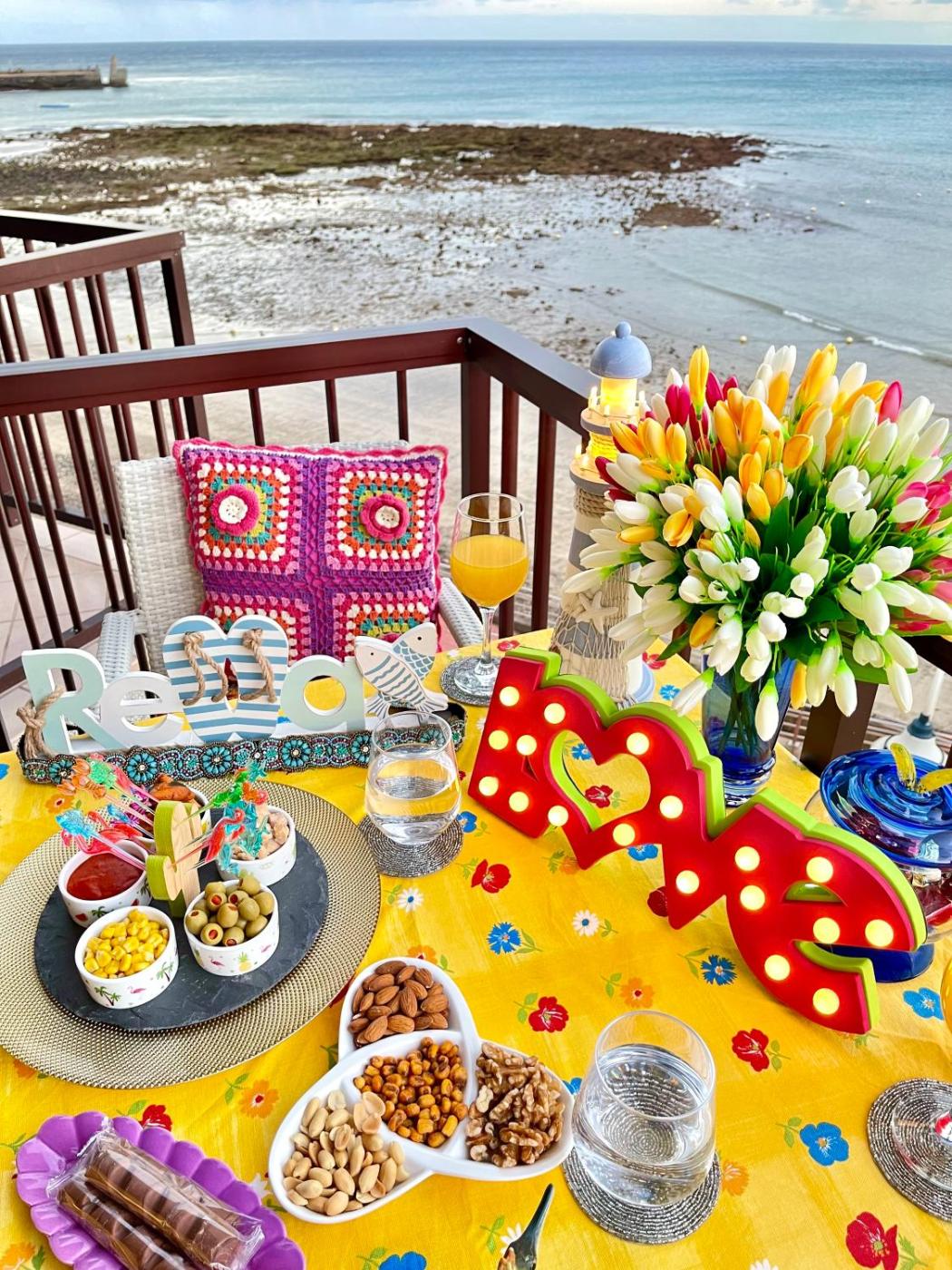 Two-Bedroom Apartment. Featuring a balcony overlooking the beach and the Atlantic Ocean, this apartment has a living room with a sofa and satellite TV. A ceramic hob, oven, electric coffee maker, and washing machine are included in the open-plan kitchen. The bathroom comes with a bath and free toiletries. WiFi and beach towels are available for an extra cost. WiFi is only available in the Kitchen and Living Room.
