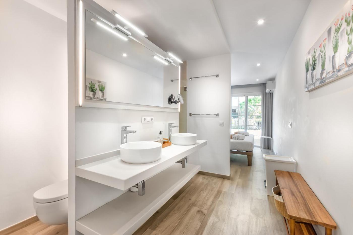 Two-Bedroom House. This spacious holiday home consists of 2 bedrooms, kitchen, a terrace and 3 bathrooms with a shower. Guests can make meals in the kitchen that is equipped with a refrigerator, a dishwasher, kitchenware and an oven. The air-conditioned holiday home provides a TV, a washing machine, a tea and coffee maker, a safe deposit box as well as sea views. The unit offers 4 beds.