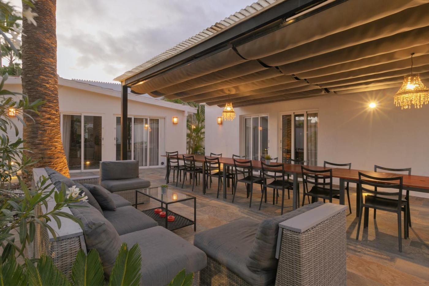 Boasting mountain views, Villa Ginevra features accommodation with an outdoor swimming pool and a patio, around 6.2 km from Aqualand. The air-conditioned accommodation is 14 km from Golf del Sur. Featuring free WiFi throughout the property, the non-smoking holiday home has a sauna.