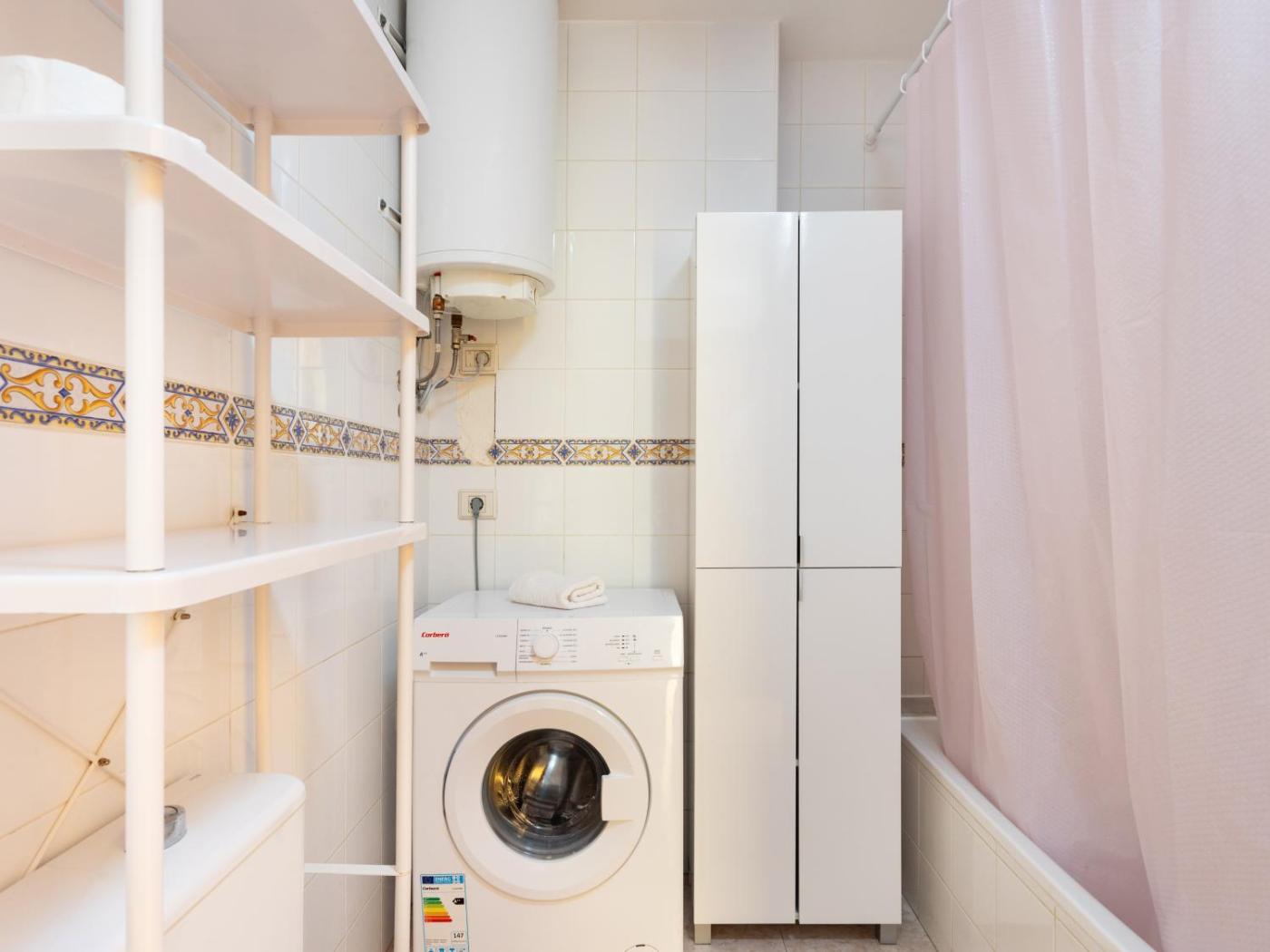 One-Bedroom Apartment. This spacious apartment comes with 1 living room, 1 separate bedroom and 1 bathroom with a bath and a hairdryer. In the fully equipped kitchen, guests will find a stovetop, an oven, a toaster and an electric kettle. Boasting a balcony with garden views, this apartment also features a washing machine and a flat-screen TV. The unit has 2 beds.
