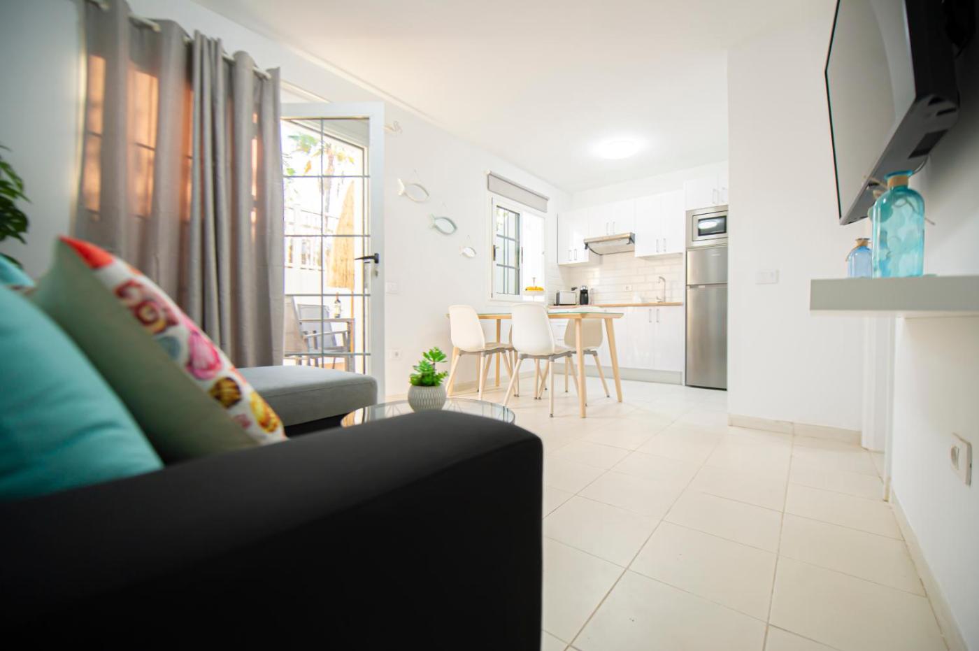 One-Bedroom Apartment. This apartment features 1 living room, 1 separate bedroom and 1 bathroom with a shower and a hairdryer. Meals can be prepared in the kitchen, which has a refrigerator, kitchenware, a microwave and a toaster. This apartment has a washing machine, a coffee machine, a flat-screen TV and a terrace. The unit has 3 beds.