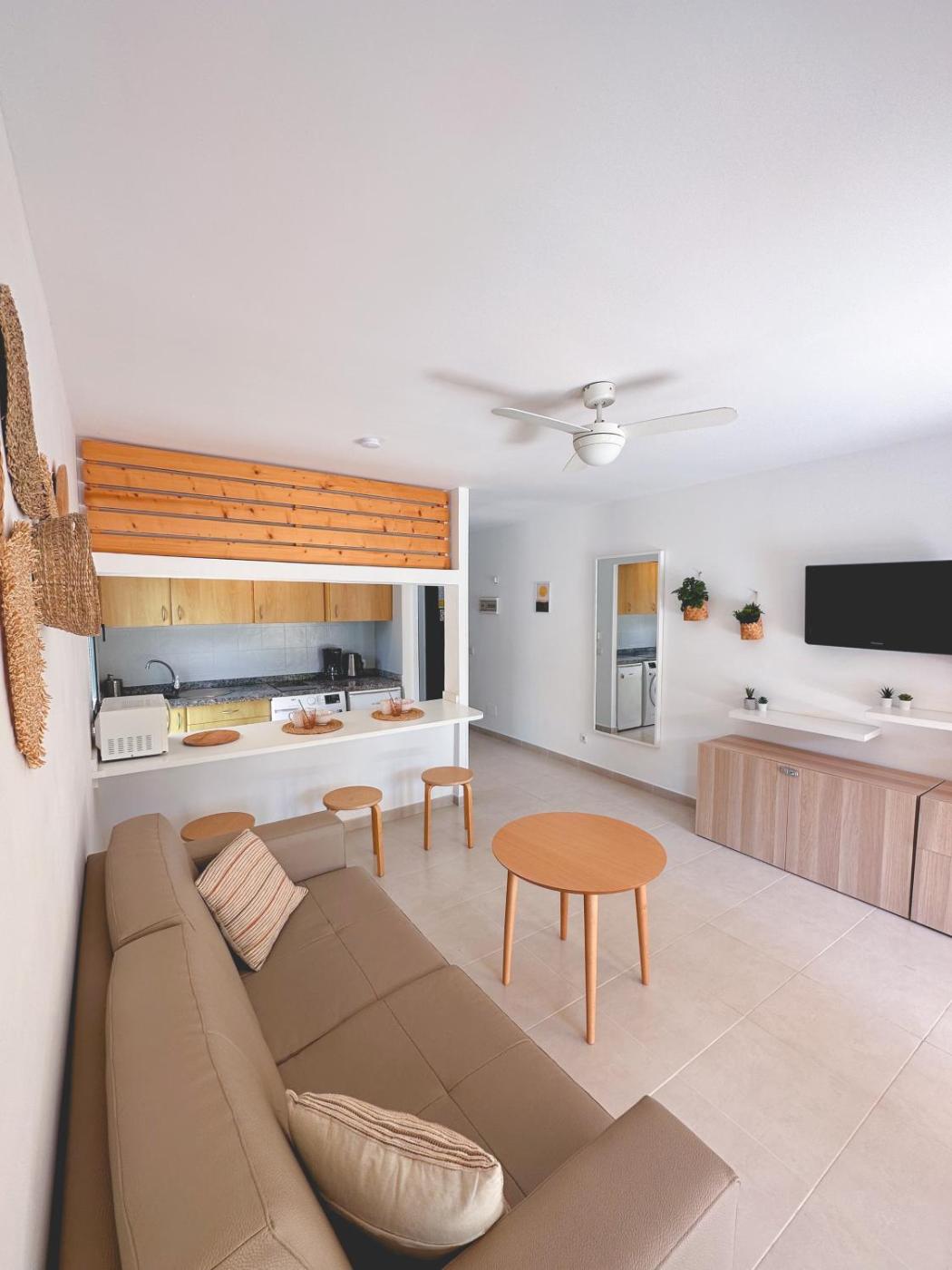 Boasting accommodation with a private pool, garden view and a patio, Seaside Apartment Corralejo: A cozy holiday home in a peaceful well located green complex isin Corralejo. 600 metres from Las Clavellinas Beach and 31 km from Eco Museo de Alcogida, the property features a garden and a tennis court. Offering free WiFi throughout the property, the non-smoking apartment features a fitness room.