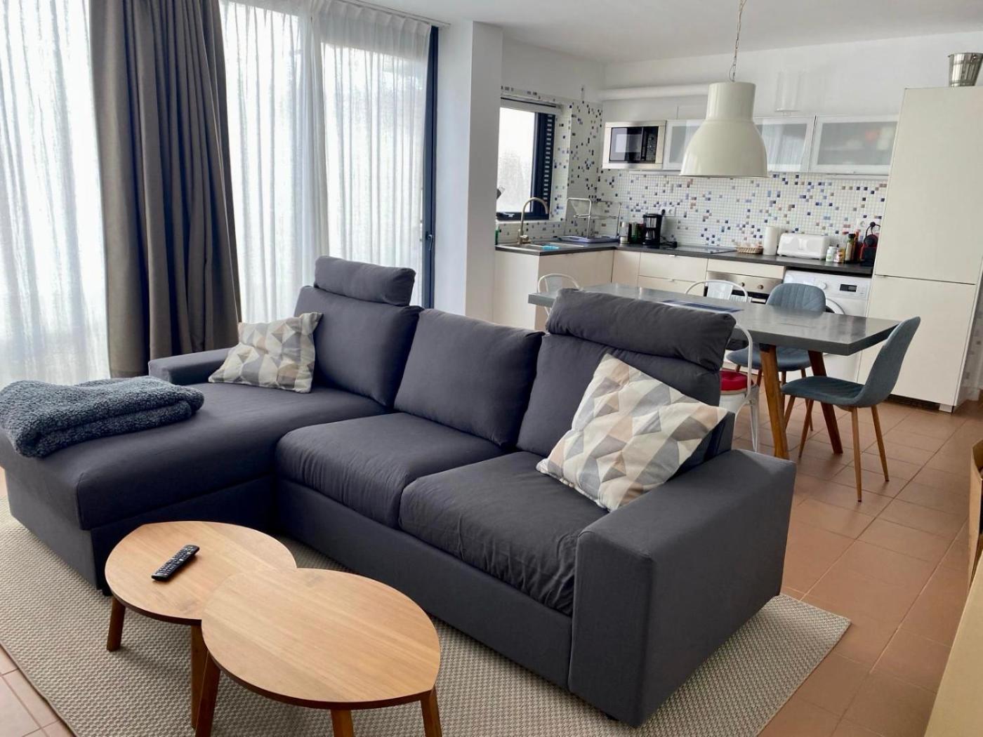 Two-Bedroom Apartment. This spacious apartment consists of 1 living room, 2 separate bedrooms and 1 bathroom with a shower and a hairdryer. Guests can make meals in the kitchen that is equipped with a stovetop, a refrigerator, kitchenware and an oven. Featuring a terrace with sea views, this apartment also provides a washing machine and a flat-screen TV with satellite channels. The unit offers 3 beds.
