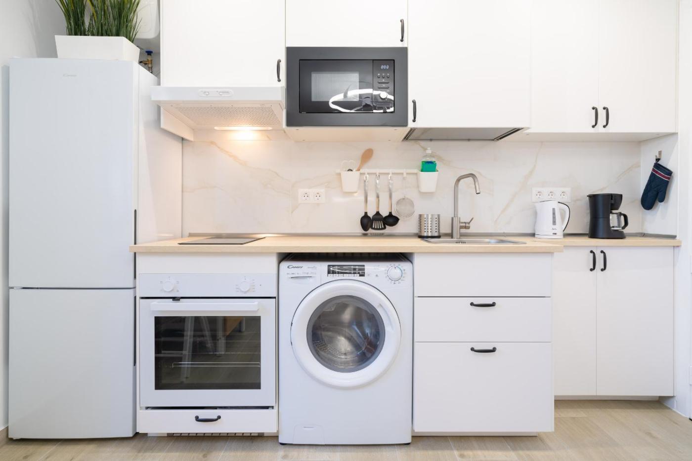 The apartment features 1 bedroom, a flat-screen TV, a fully equipped kitchen with a microwave and a fridge, a washing machine, and 1 bathroom with a shower. Towels and bed linen are featured in the apartment.