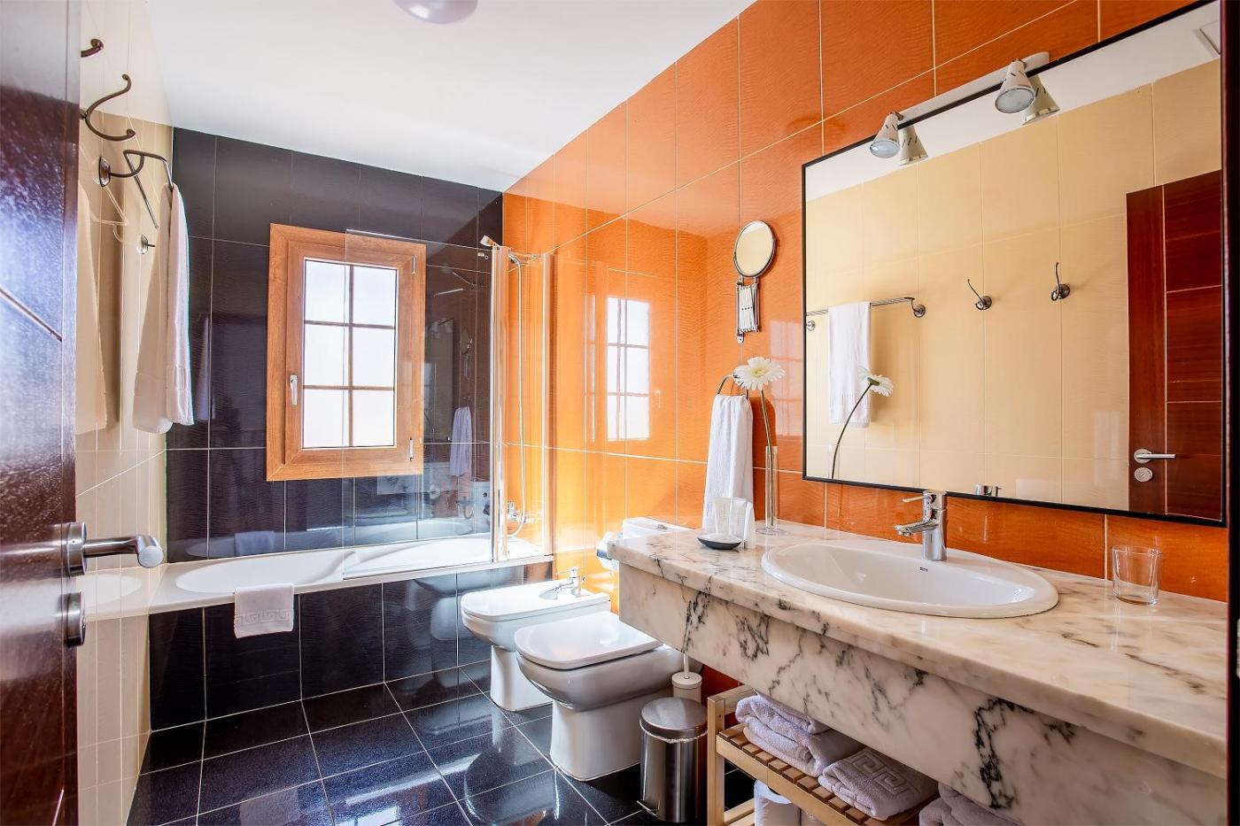 These luxury villas, featuring a private outdoor pool, are just 300 metres from the Atlantic Ocean in Lanzarote’s Costa Teguise. Each has a hydro-massage bath and flat-screen satellite TV.