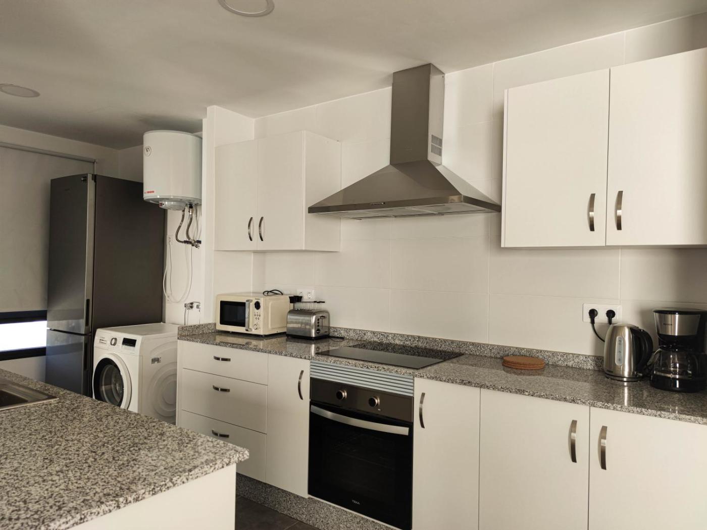Three-Bedroom Villa. Boasting a private entrance, this villa includes 1 living room, 3 separate bedrooms and 3 bathrooms with a walk-in shower and a hairdryer. In the fully equipped kitchen, guests will find a refrigerator, a dishwasher, kitchenware and an oven. Featuring a terrace with mountain views, this villa also offers a washing machine and a flat-screen TV. The unit has 3 beds.