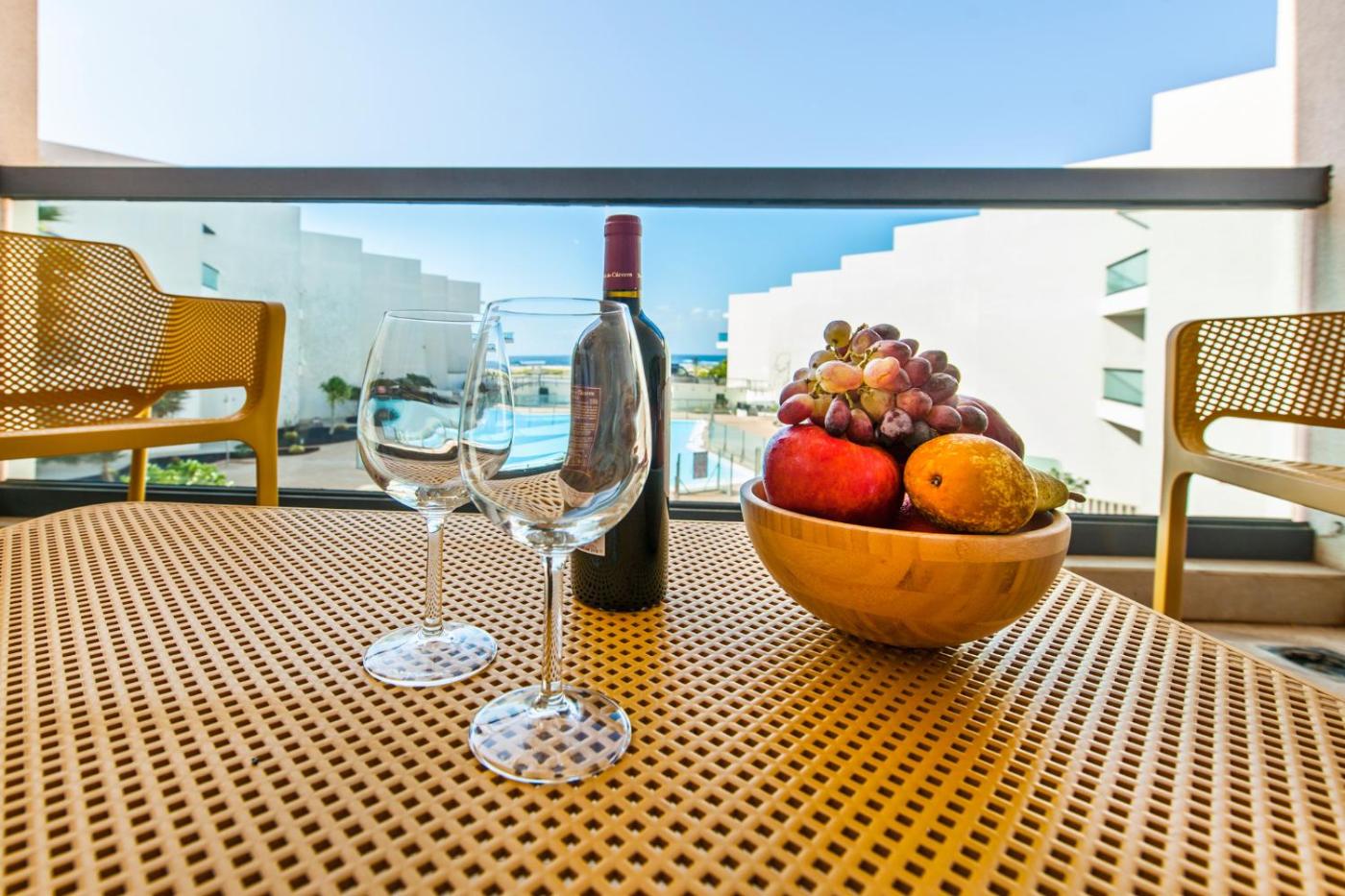 One-Bedroom Apartment. The pool with a view is a top feature of this apartment. This apartment comes with 1 living room, 1 separate bedroom and 1 bathroom with a shower and free toiletries. In the well-fitted kitchen, guests will find a stovetop, a refrigerator, a dishwasher and kitchenware. Boasting a terrace with sea views, this apartment also features a washing machine and a flat-screen TV with cable channels. The unit has 3 beds.