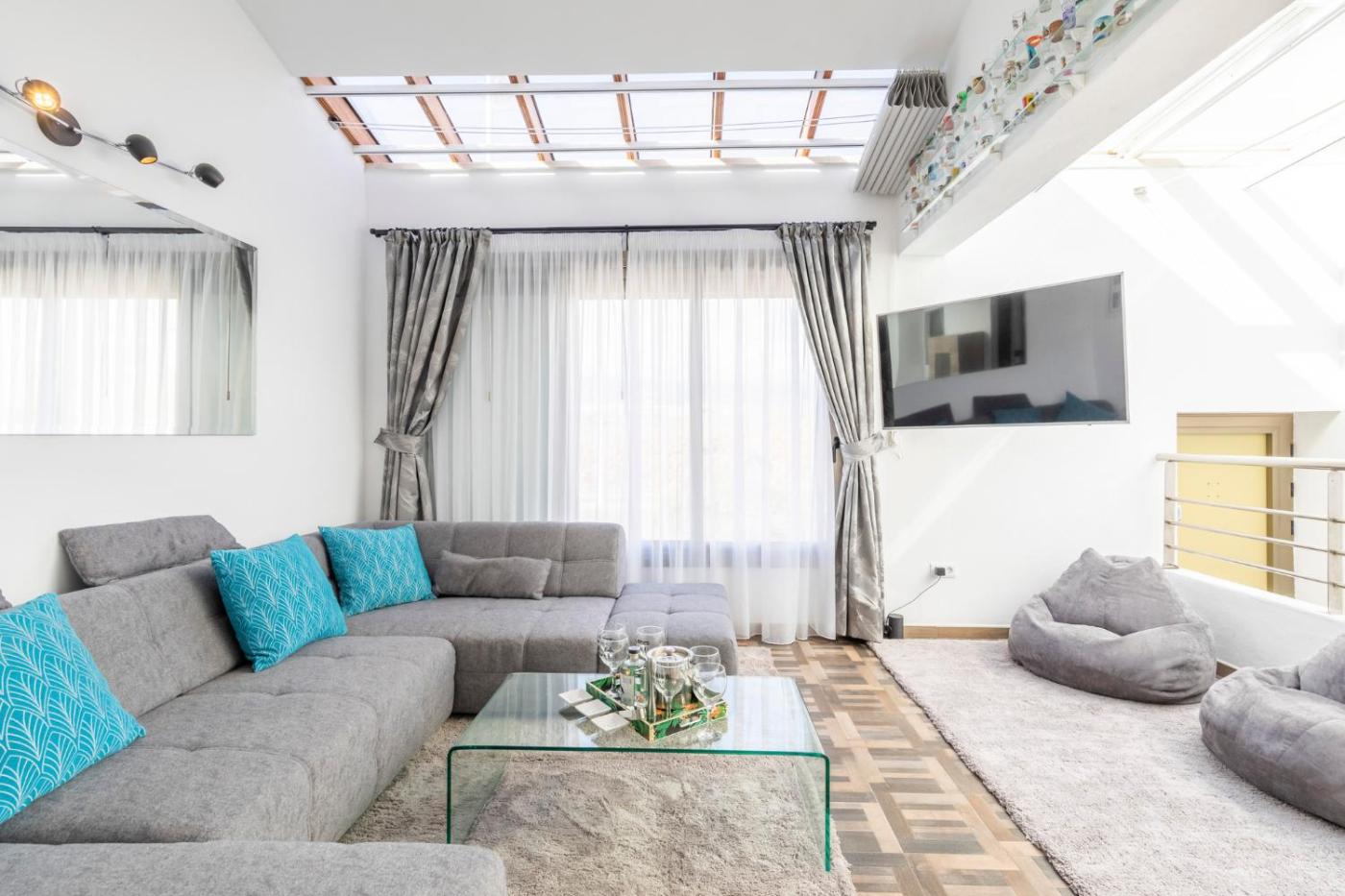Three-Bedroom Townhouse. Guests will have a special experience as this holiday home offers a hot tub and a spa bath. Featuring a private entrance, this air-conditioned holiday home is comprised of 2 living rooms, 3 separate bedrooms and 2 bathrooms with a walk-in shower and a hairdryer. The well-equipped kitchen features a stovetop, a refrigerator, a dishwasher and kitchenware. The holiday home has a washing machine, a coffee machine, a seating area as well as a terrace with mountain views. The unit offers 3 beds.