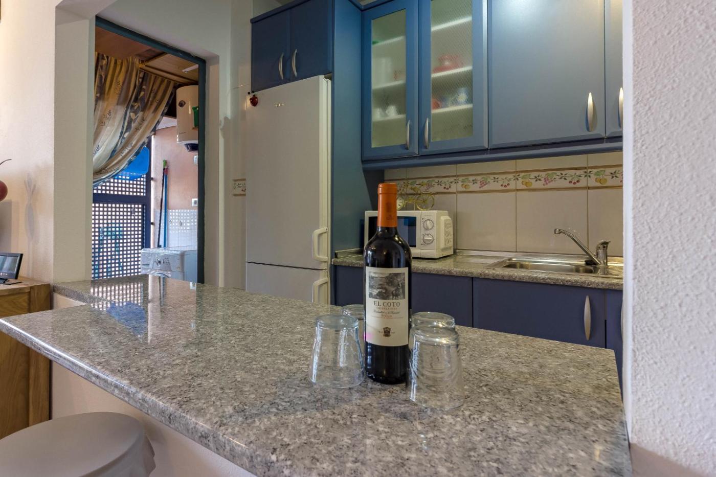 Two-Bedroom Apartment. Featuring a private terrace, this apartment has 1 double bedroom and 1 twin bedroom. The kitchen is equipped with an oven, hob and microwave, while the living room comes with a TV, sofa and dining table.