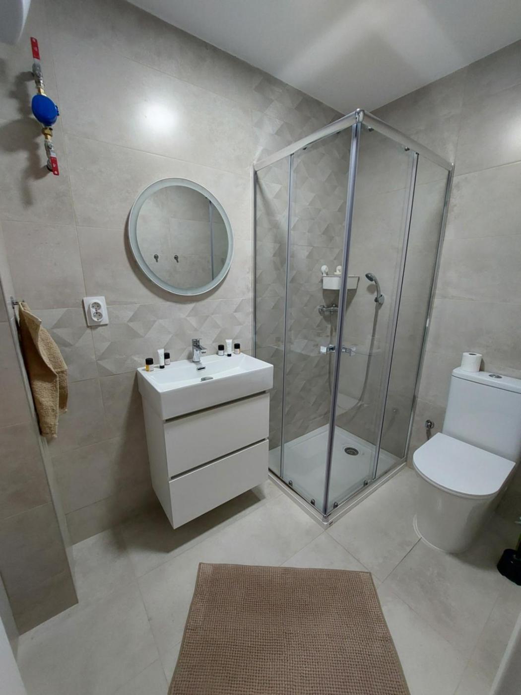 One-Bedroom Apartment with Balcony and City View. Featuring a private entrance, this apartment consists of 1 living room, 1 separate bedroom and 1 bathroom with a walk-in shower and a hairdryer. In the well-equipped kitchen, guests will find a stovetop, a refrigerator, kitchenware and a microwave. This apartment features a washing machine, flat-screen TV with streaming services, city views, as well as chocolate for guests. The unit offers 2 beds. ;