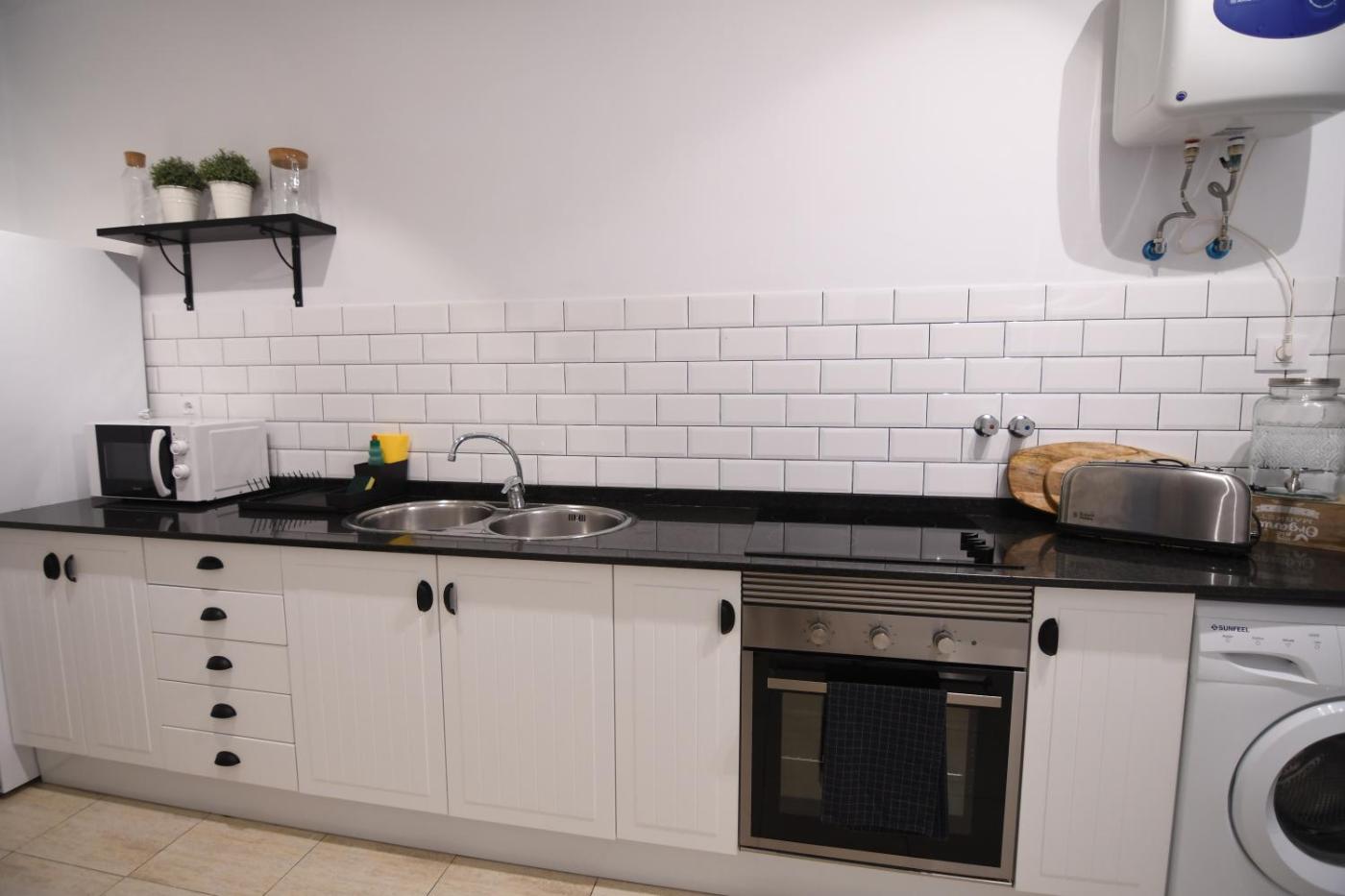 Three-Bedroom Apartment. This spacious apartment consists of 1 living room, 3 separate bedrooms and 2 bathrooms with a walk-in shower and free toiletries. Guests can make meals in the kitchen that is equipped with a refrigerator, kitchenware, an oven and a microwave. The apartment provides a washing machine, a private entrance, a tea and coffee maker, a flat-screen TV with streaming services, as well as city views. The unit offers 4 beds.