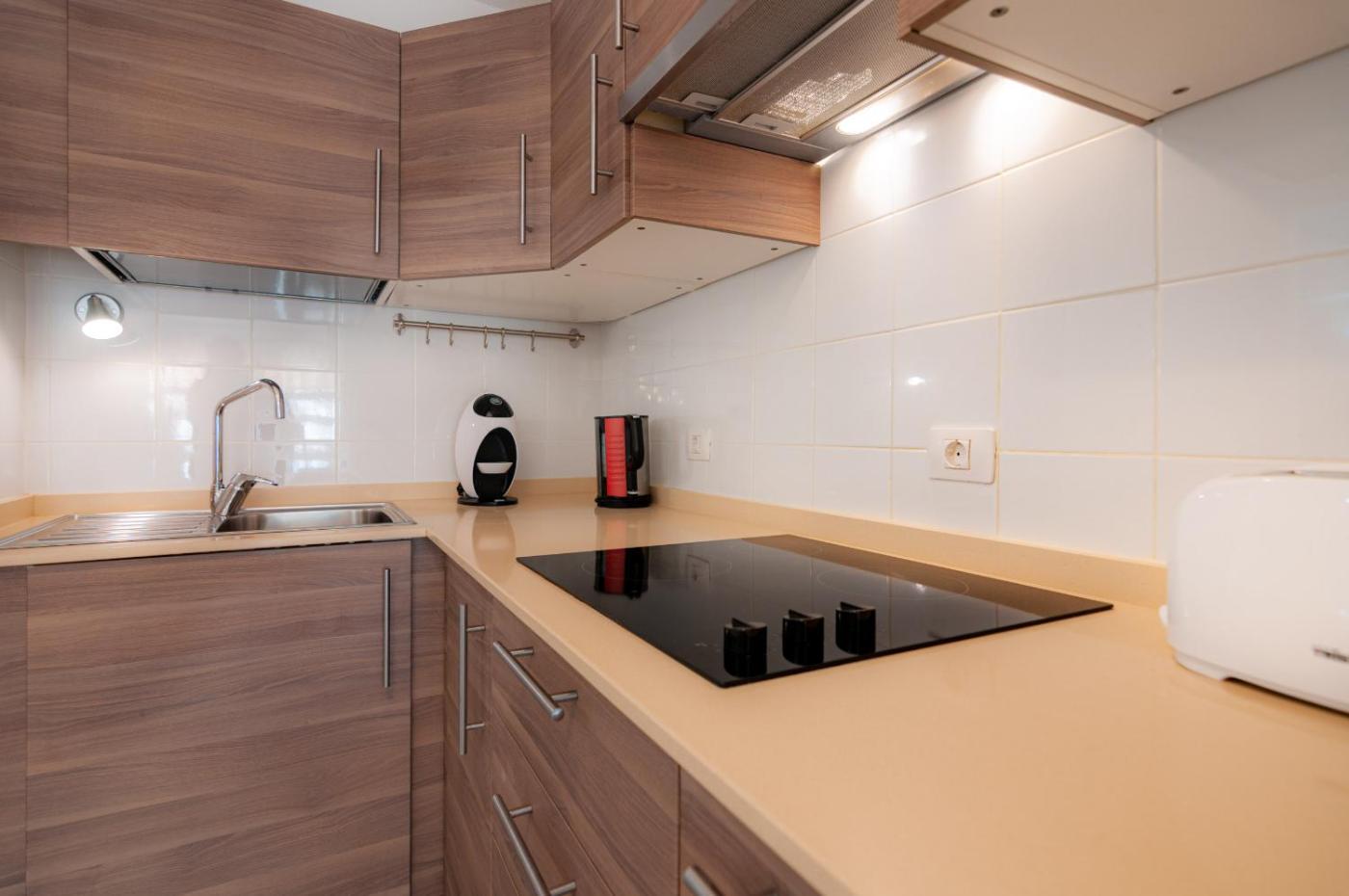 The apartment is equipped with a satellite TV. The kitchen comes with a microwave, a toaster and a fridge, as well as coffee machine and kettle. The property offers pool views.