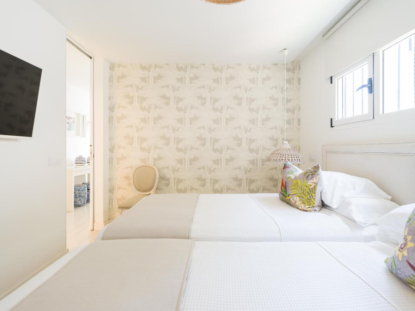 Two-Bedroom Apartment. This apartment features a private pool. This spacious apartment comprises 1 living room, 2 separate bedrooms and 1 bathroom with a walk-in shower and free toiletries. Guests can make meals in the kitchen that comes with a stovetop, a refrigerator, a dishwasher and kitchenware. The air-conditioned apartment provides a flat-screen TV with streaming services, a washing machine, a private entrance, a tea and coffee maker as well as sea views. The unit offers 4 beds.