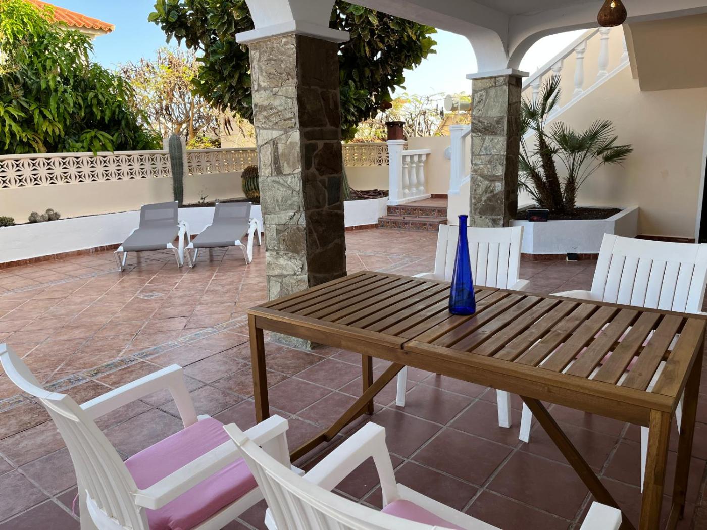The spacious apartment with a terrace and pool views features 2 bedrooms, a living room, a flat-screen TV, an equipped kitchen with a dishwasher and a microwave, and 1 bathroom with a bath. Guests can enjoy a meal on an outdoor dining area while overlooking the garden views.