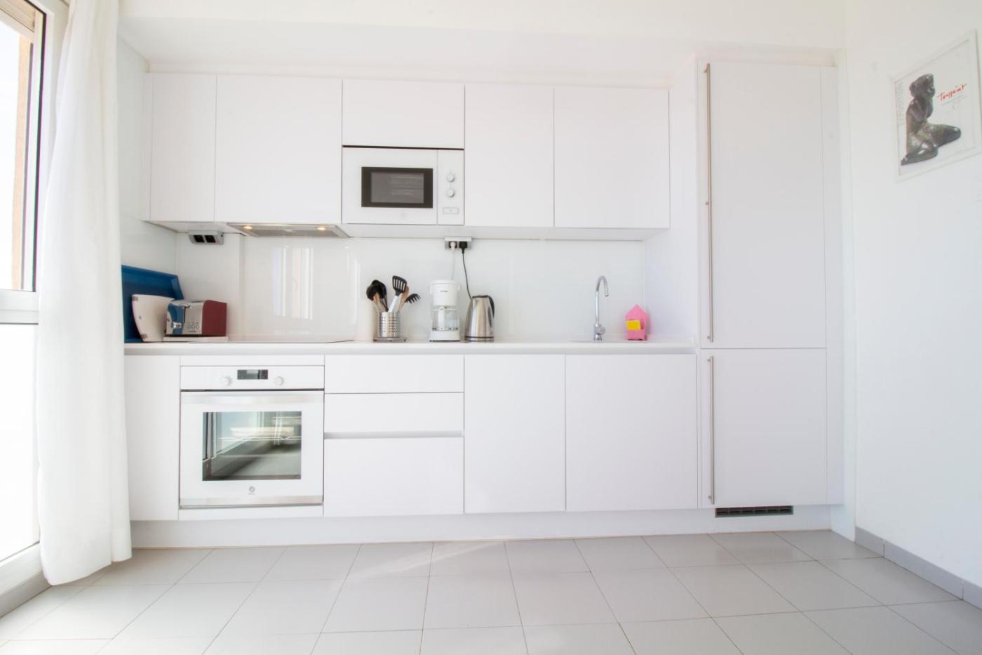 Apartment with Sea View. This spacious apartment is comprised of 1 living room, 2 separate bedrooms and 2 bathrooms with a bath and a shower. The well-equipped kitchen features a stovetop, a refrigerator, a dishwasher and kitchenware. The apartment offers a washing machine, a tea and coffee maker, a seating area as well as a terrace with sea views. The unit offers 3 beds.