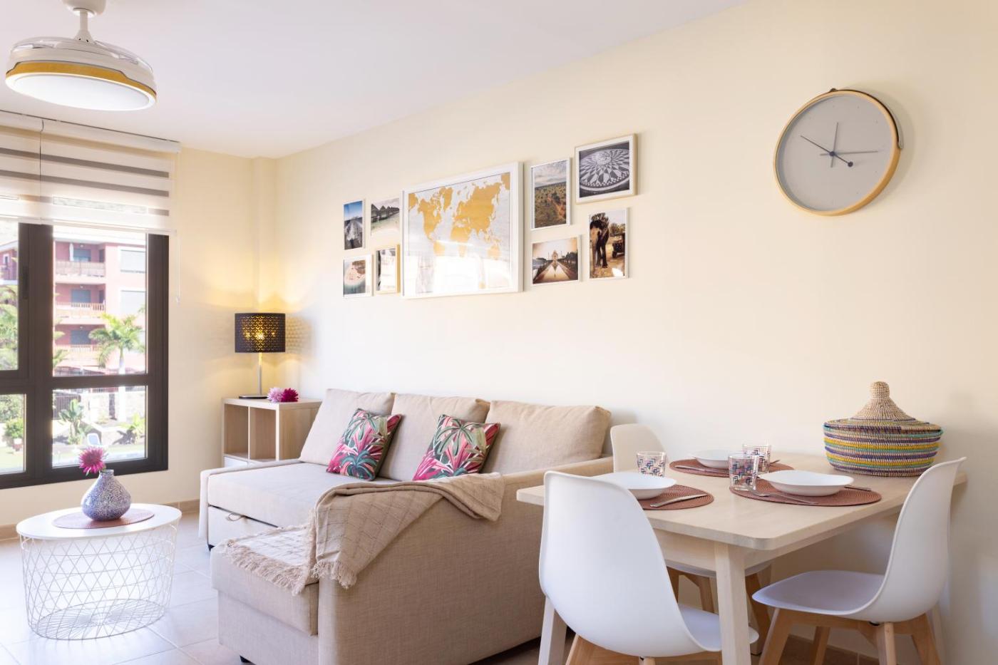 Located 1.2 km from Arenita Beach, Home2Book Palm-Mar Bright Pool View El Mocán provides accommodation in Palm-mar with access to a year-round outdoor pool, free WiFi and a tour desk. The property is11 km from Aqualand, 13 km from Golf del Sur and 37 km from Los Gigantes. Outdoor seating is also available at the apartment.