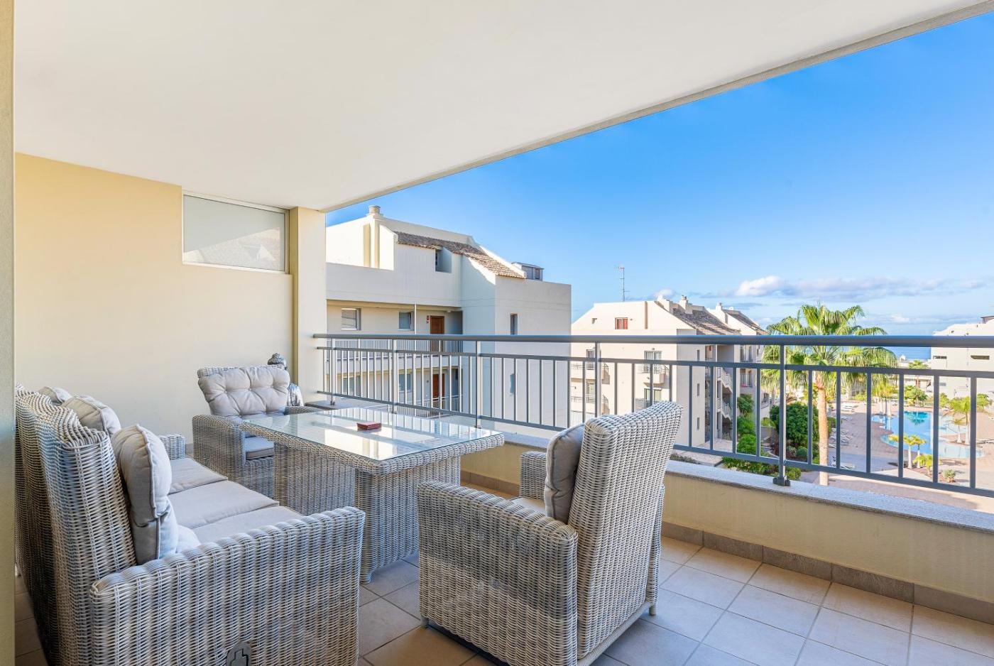 Apartment. This apartments standout feature is the pool with a view. Boasting a private entrance, this spacious apartment also includes 2 bedrooms, a seating area and 3 bathrooms with a bath and a shower. Guests can make meals in the kitchen that is fitted with a stovetop, a refrigerator, kitchenware and an oven. The air-conditioned apartment offers a flat-screen TV with cable channels, a washing machine, a dining area, a wardrobe as well as sea views. The unit has 3 beds.