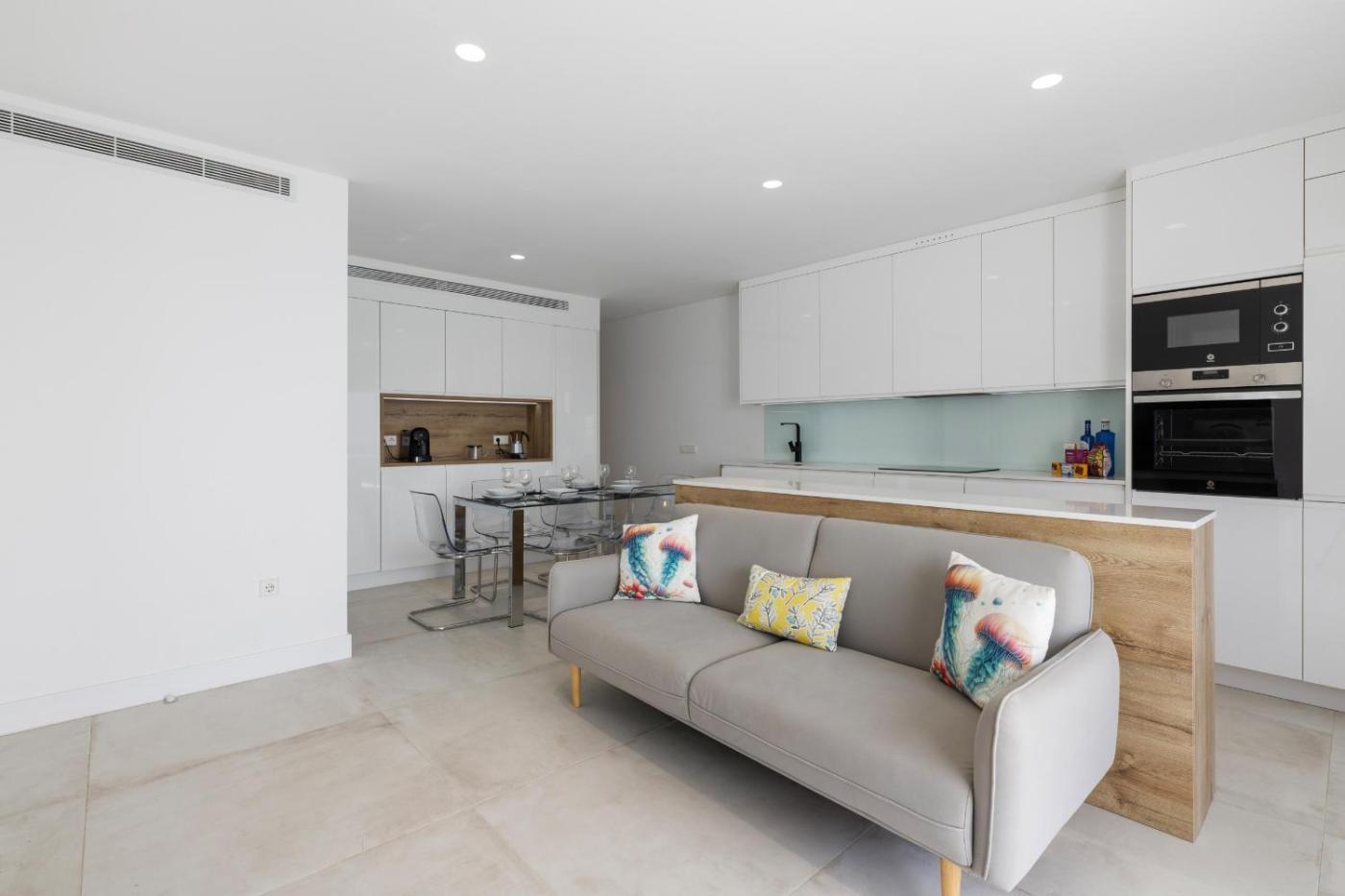 Three-Bedroom Apartment with Sea View. Boasting 3 bedrooms and 2 bathrooms with a shower, this spacious apartment has a well-fitted kitchen and a terrace. Guests can make meals in the kitchen that features a refrigerator, kitchenware, an oven and a microwave. Featuring a balcony, this apartment also features a washing machine, a tea and coffee maker and a TV. The unit offers 3 beds.