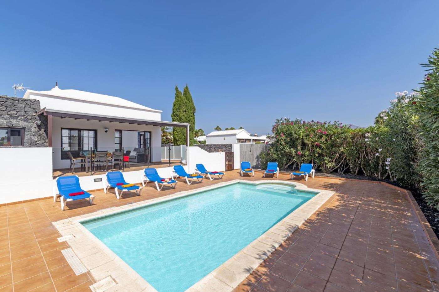 Set in Playa Blanca, Villa Stephanie offers accommodation with free WiFi, air conditioning, a private beach area and access to a garden with an outdoor pool. It is situated 700 metres from Playa Blanca and provides private check-in and check-out. Free private parking is available and the villa also features bike hire for guests who want to explore the surrounding area.