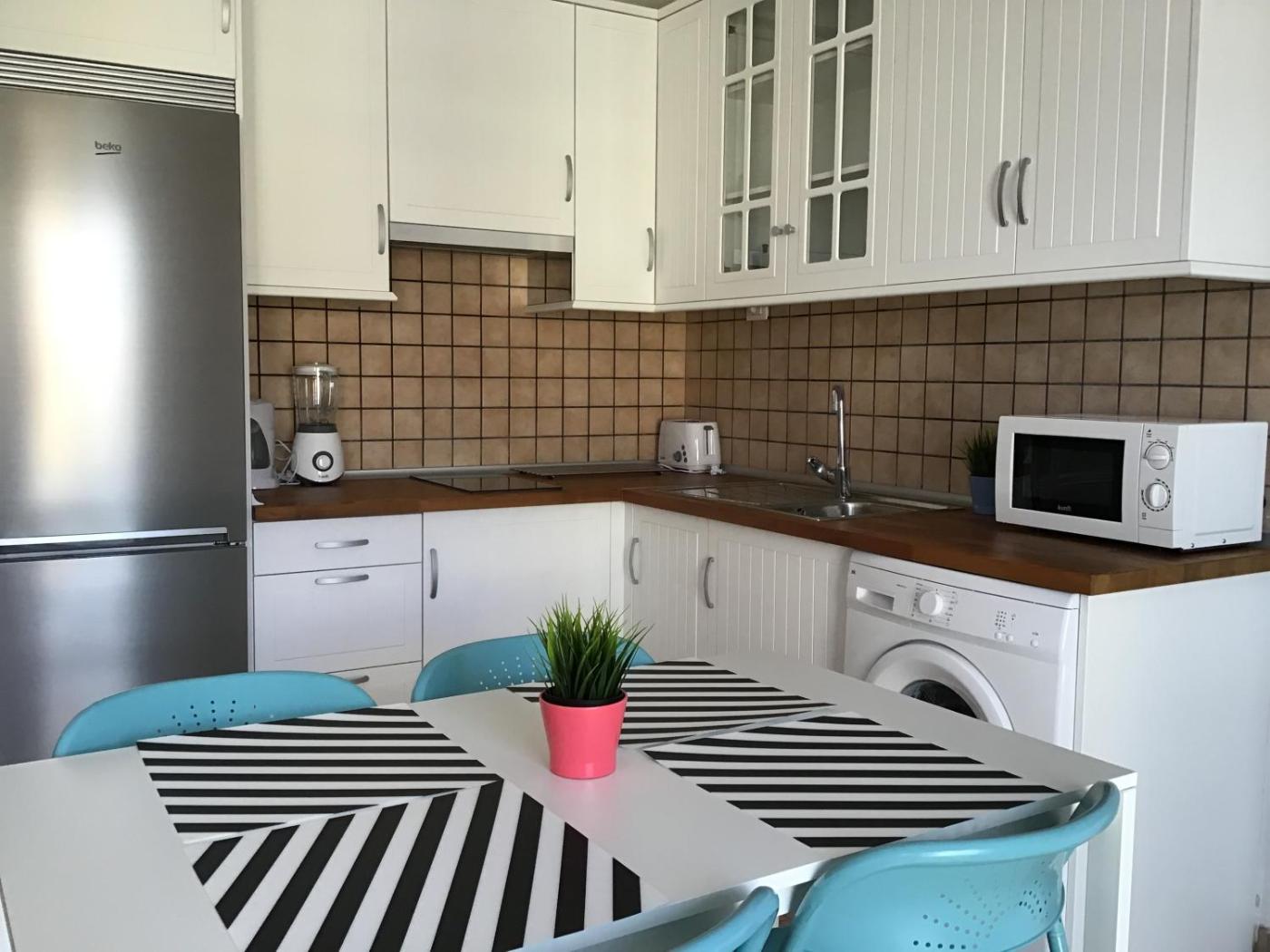 One-Bedroom Apartment. Boasting a private entrance, this apartment includes 1 living room, 1 separate bedroom and 1 bathroom with a shower and a bidet. In the kitchen, guests will find a stovetop, a refrigerator, kitchenware and a microwave. Featuring a balcony with sea views, this apartment also offers a washing machine and a flat-screen TV. The unit has 2 beds.