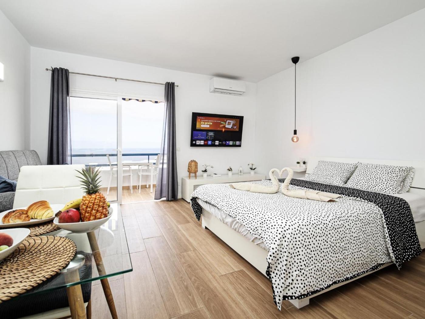Studio with Ocean View. In the kitchenette, guests will find a stovetop, a refrigerator, kitchenware and a microwave. This air-conditioned studio is comprised of a flat-screen TV with streaming services, a private bathroom as well as a balcony with sea views. The unit has 2 beds.