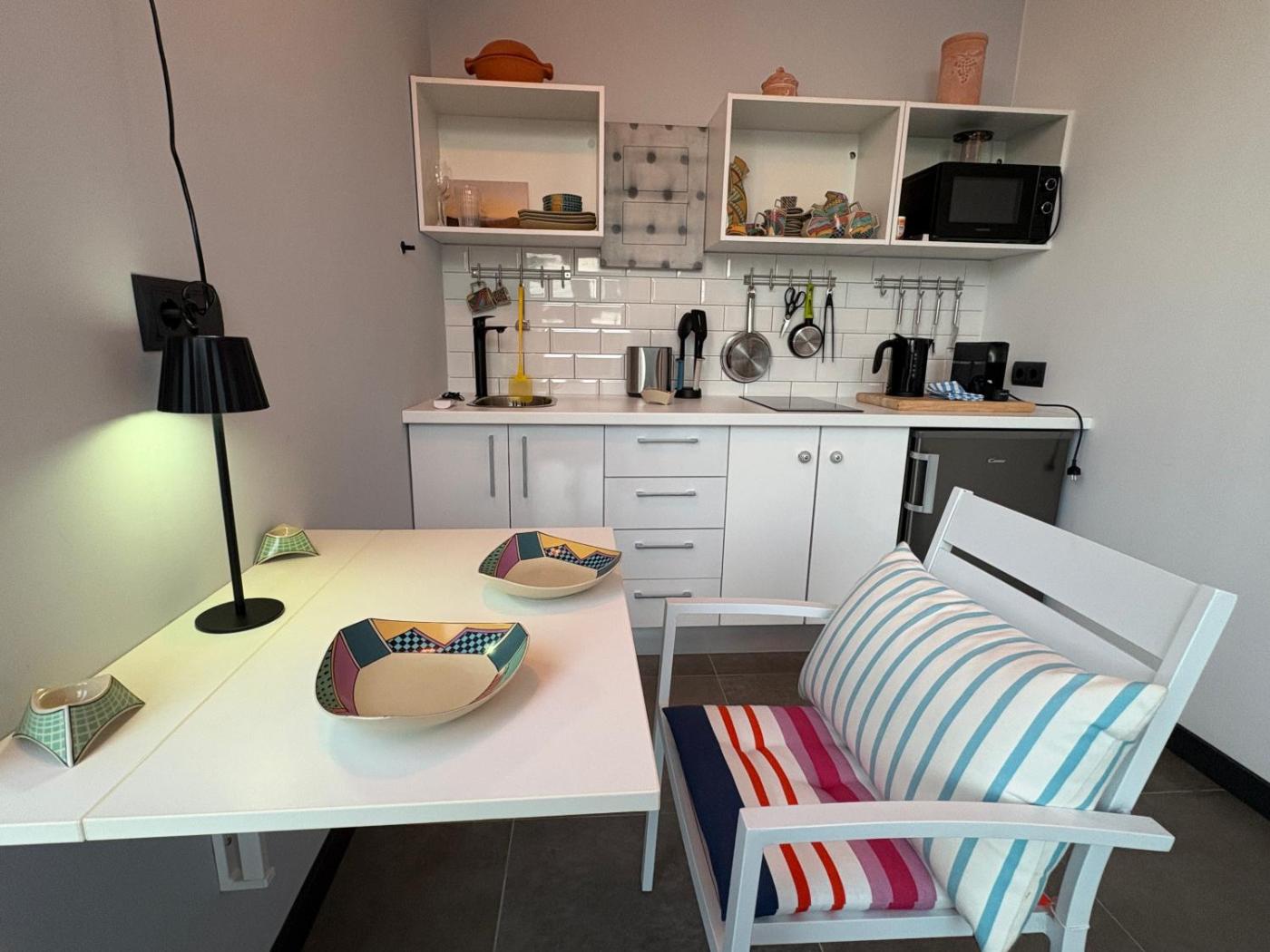 One-Bedroom Apartment. The pool with a view is a top feature of this apartment. Featuring a private entrance, this air-conditioned apartment comprises a kitchen, 1 bedroom and 1 bathroom with a walk-in shower and a hairdryer. Meals can be prepared in the well-fitted kitchen, which comes with a stovetop, a refrigerator, kitchenware and a microwave. Boasting a terrace with sea views, this apartment also provides a tea and coffee maker and a flat-screen TV. The unit offers 1 bed.