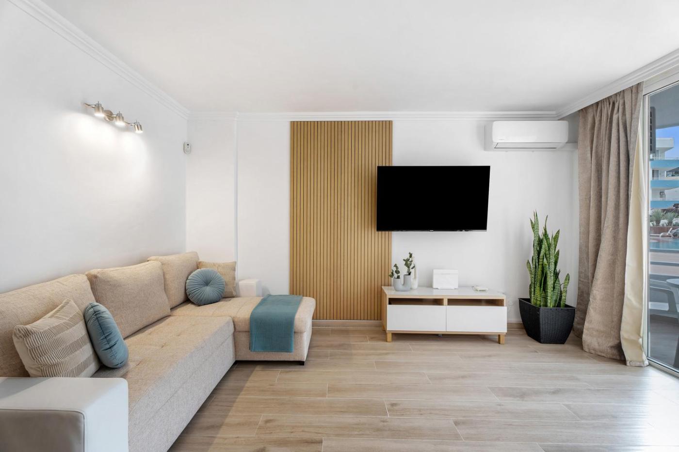 Guests at the apartment can enjoy cycling nearby, or make the most of the year-round outdoor pool.