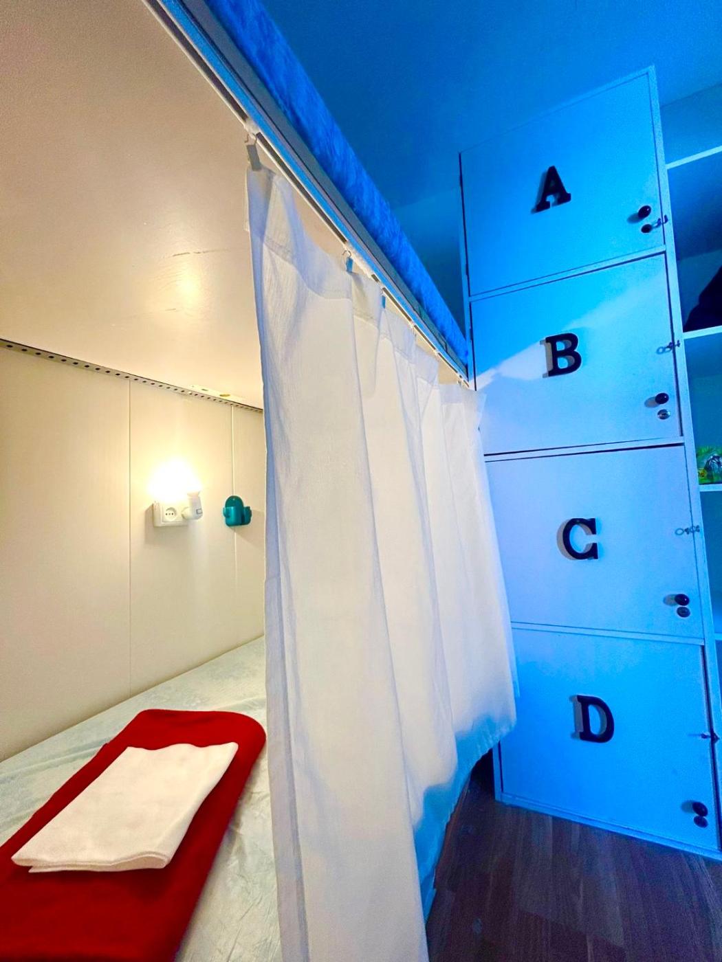 Guest rooms at the hostel are equipped with a shared bathroom and bed linen.