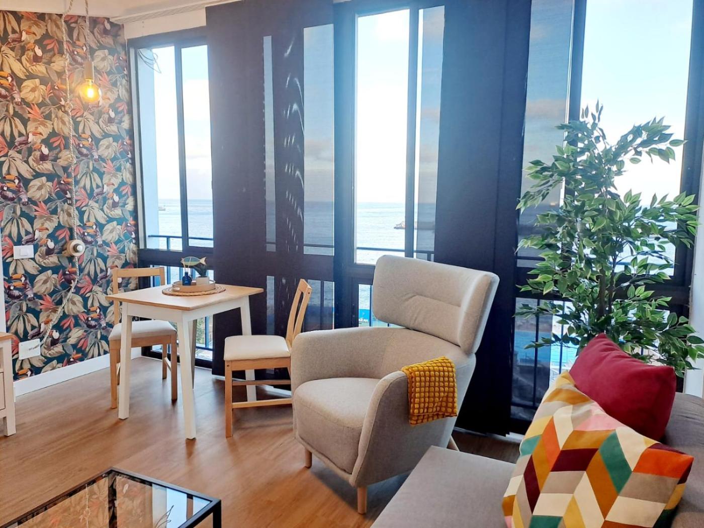 The apartment with a balcony and sea views features 1 bedroom, a living room, a flat-screen TV, an equipped kitchen with a microwave and a toaster, and 1 bathroom with a shower. Towels and bed linen are provided in the apartment. Additional in-room amenities include chocolates or cookies.