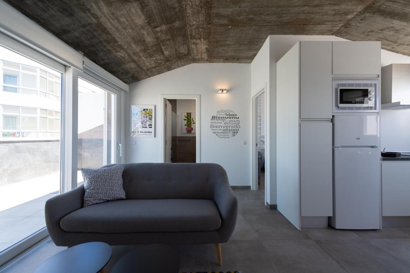 One-Bedroom Apartment. This apartment consists of 1 living room, 1 separate bedroom and 1 bathroom with a walk-in shower and free toiletries. Meals can be prepared in the kitchen, which is equipped with a stovetop, a refrigerator, kitchenware and a microwave. Featuring a terrace with sea views, this apartment also provides a washing machine and a flat-screen TV. The unit offers 1 bed.